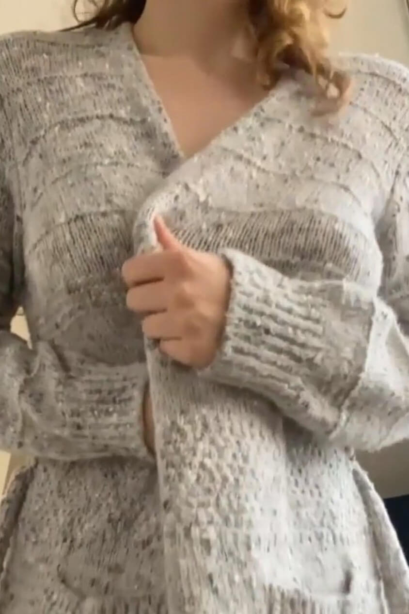 Big boobs / GIFs / Nipples Do you like banana tits? (gif) Watch a sexy amateur girl revealing her impressive big banana tits and big nipples under the knitted cardigan. ShareSharePin It