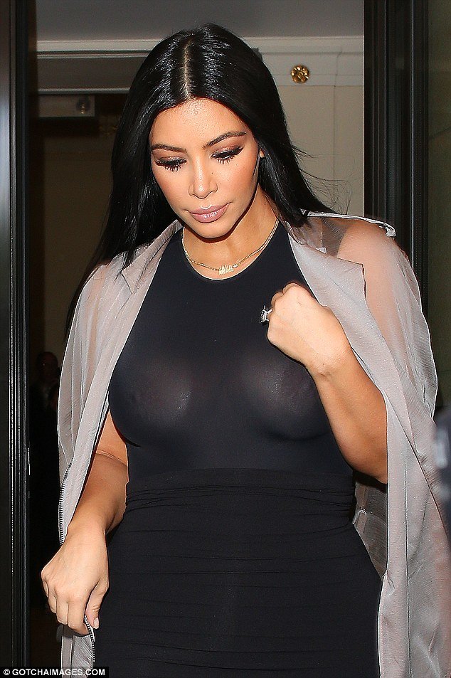 Braless Kim Kardashian flaunts nipples in see-through dress leaving the hotel
