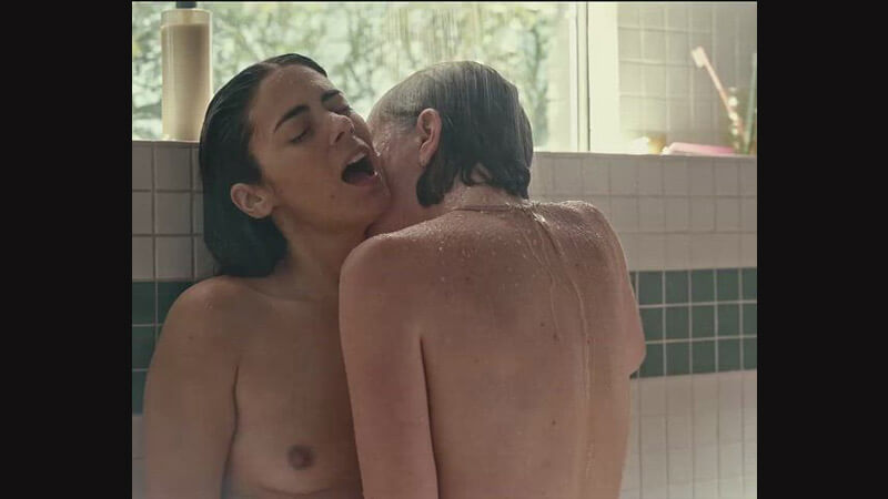 Watch a lesbian scene of the two actresses (the Chilean and the American) showing their tits, performing naked in the shower, on an episode of the TV series “Hacks”.