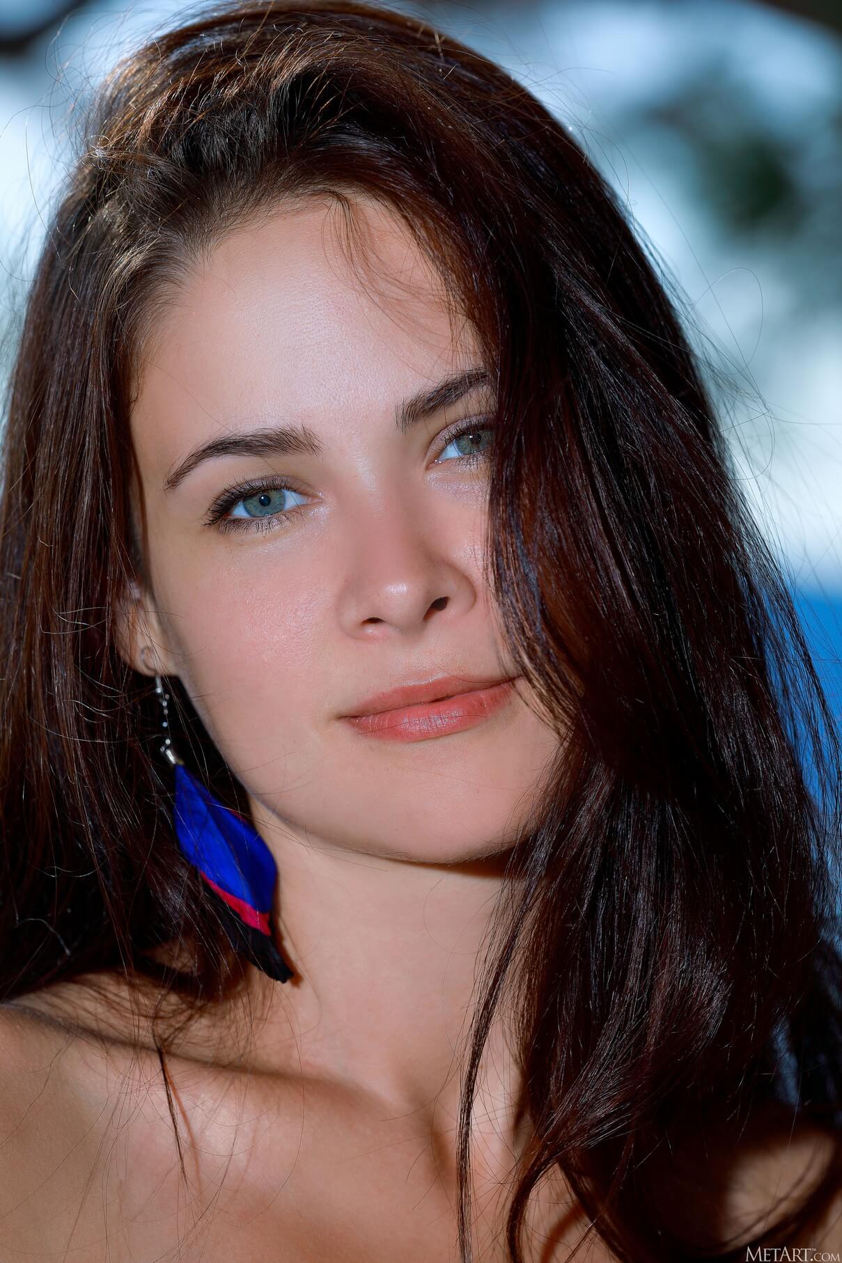 Artisitc nude gallery of stunning brunette girl Martina Mink who is elegantly sexy in blue lace lingerie, enhancing the gorgeous ocean view with her erotic beauty.