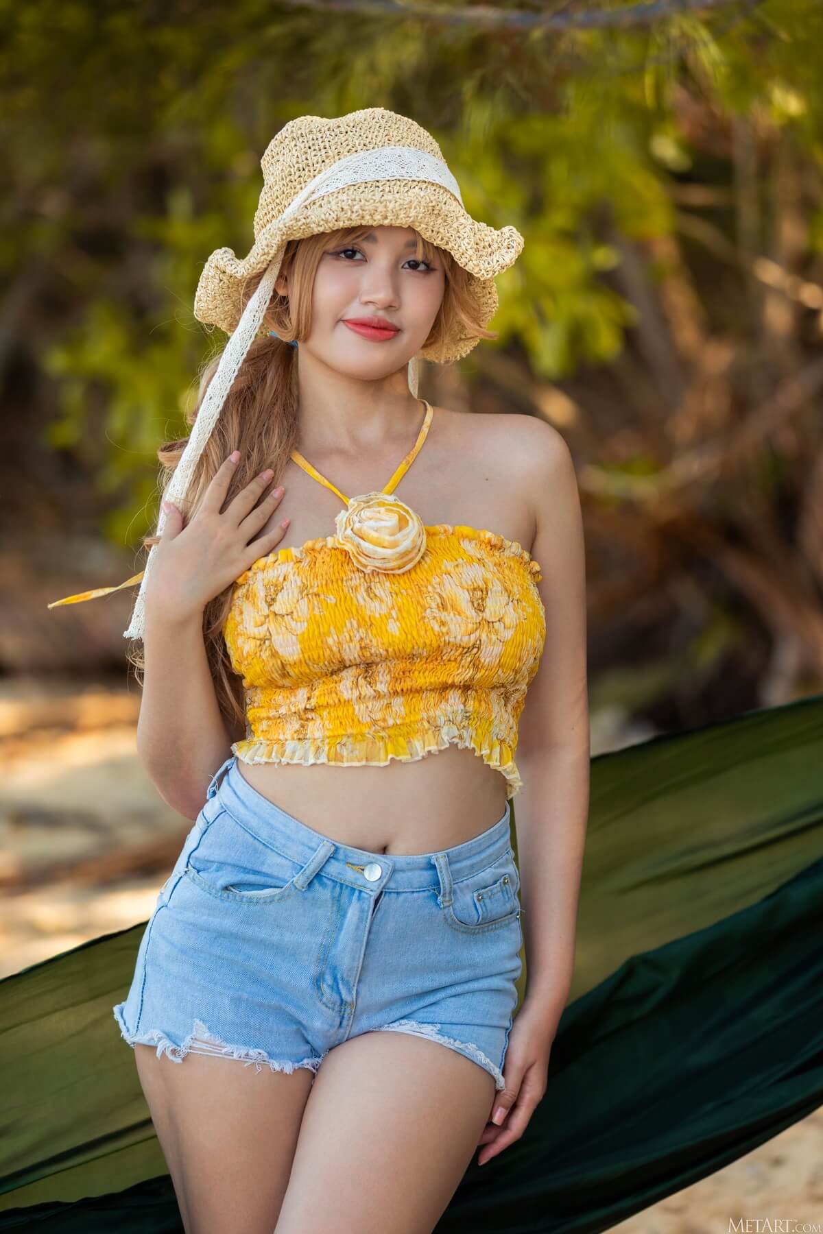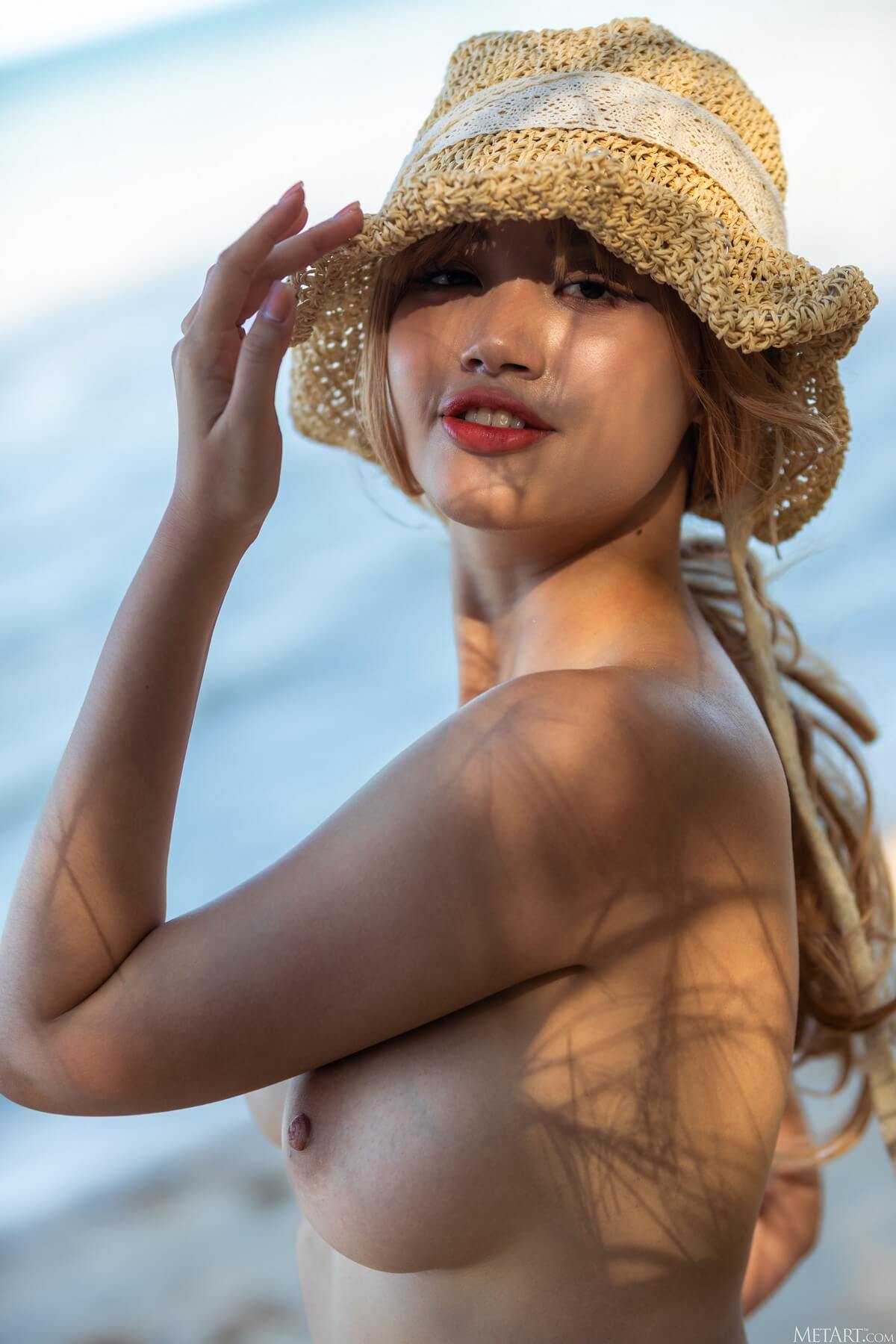 Erotic gallery with exotic Vietnamese model showing off her big tits and sexy curves by removing her braless top and jean shorts in a new photoshoot by Metart.