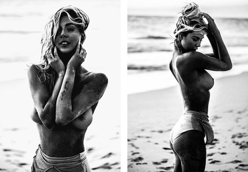 Paige Marie Evans Topless in Black and White on the Sand -5