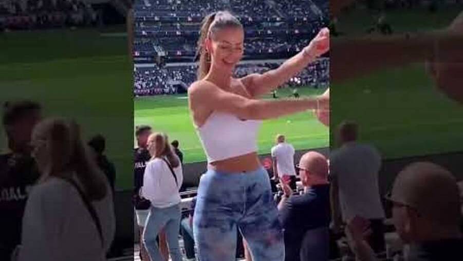 Funny / Videos Soccer hot fit vibes (video) Funny time with a beautiful woman with an impressive fit body and funbags wearing a hot outfit, a white crop top and yoga pants, in a dancing routine inside the stadium at a soccer game. ShareSharePin It