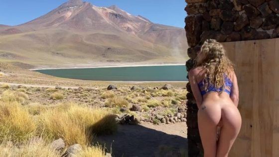 Sexy blonde babe with great ass in blowjob and anal sex outdoors