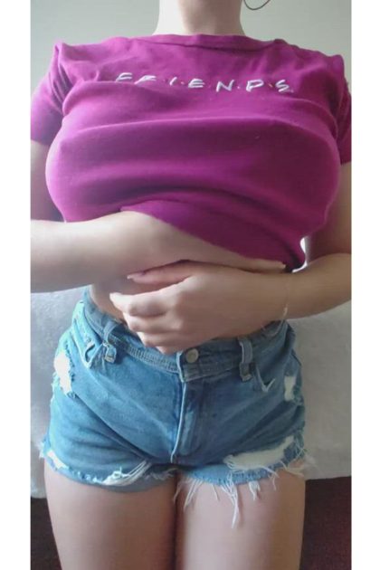 What do you say? Watch a sexy gif of a cute real girl flashing her large breasts, in a moment of self-confidence, under the braless …