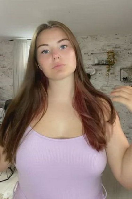 NSFW TikTok video of an amateur chubby girl flaunting her bare big breasts and big ass.