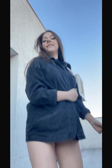 NSFW video with a cute amateur girl flashing an attractive nude curvy body on the roof!