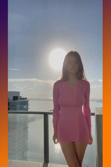 Big tits babe in balcony striptease (gif)