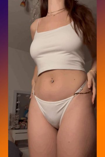 Amateur girl in panties flashing her natural boobs under the braless top.
